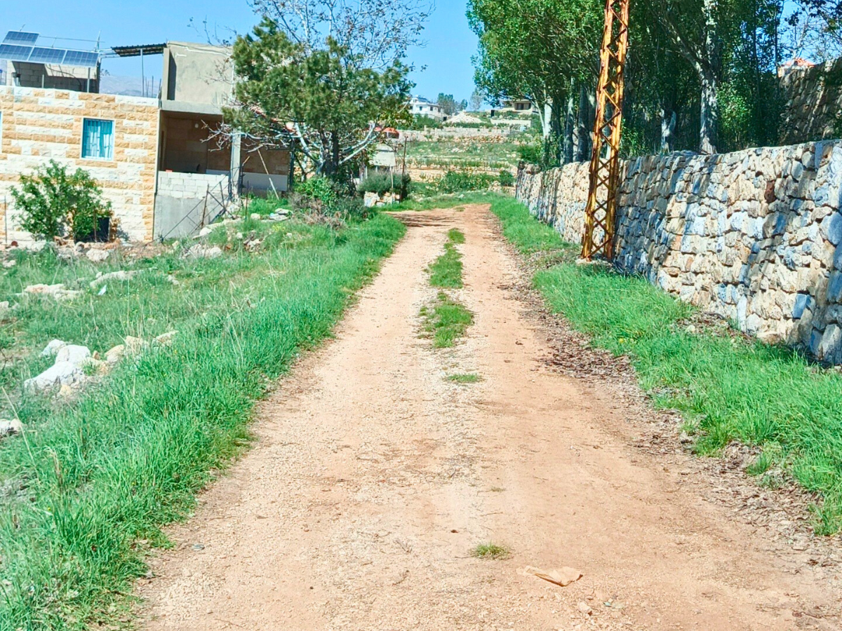 For sale in Tarchich: undeveloped land (Property No. H88) covering 1,111 m² at an altitude of ~1,420 m. The land has a gentle slope and offers stunning views of Mount Sannine (North) and the sea (West).