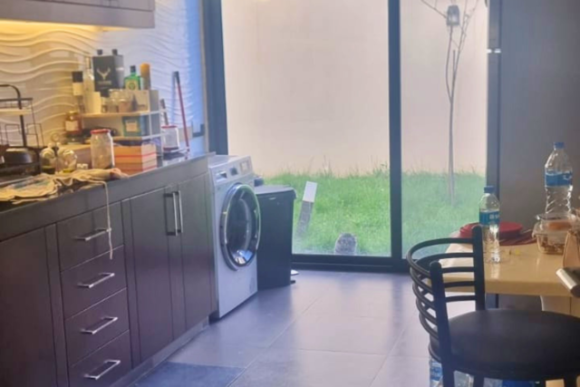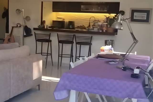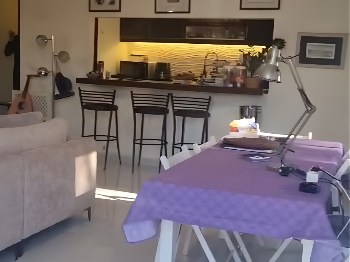 •Kitchen: Open-plan with bar design, modern style